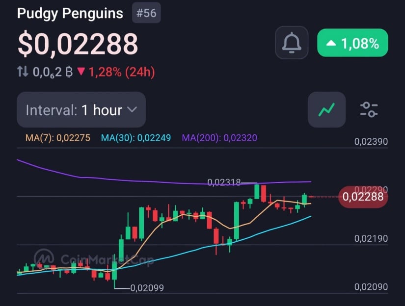 Ах, покупатели! Эти бесстрашные души, которые видят возможности там, где другие видят хаос. Олки, проницательный наблюдатель, отмечает, что цена PENGU консолидируется около $0.0228, в то время как скользящие средние пересекаются вверх с грацией гуся, пытающегося исполнить балет. 🦢 Структура сжимается, как сюжет в одной из моих историй, сигнализируя об изменении тренда, столь же тонком, как нос в романе Гоголя. 👃