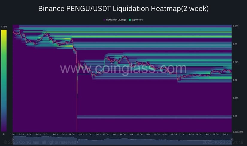Созерцайте, технические звезды выстраиваются в ряд! Али Мартинес, этот мудрец графиков, провозглашает сигнал покупки TD Sequential, словно небеса сами объявили: ‘Восстань, PENGU, и шагай вперед!’ 📈 Структура, когда-то хаотичная и нерешительная, теперь сжимается, как корсет на герое Гоголя, намекая на восстановление, столь же неизбежное, как русская зима. ❄️ До тех пор, пока цена держится на уровне $0.021 — $0.022, как бюрократ за своими бумагами, быки могут еще нанести штурм с новой энергией. 🐂